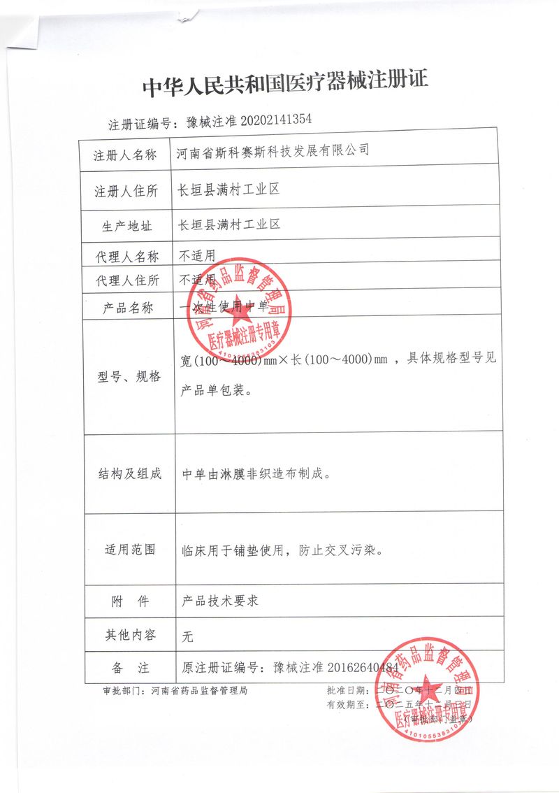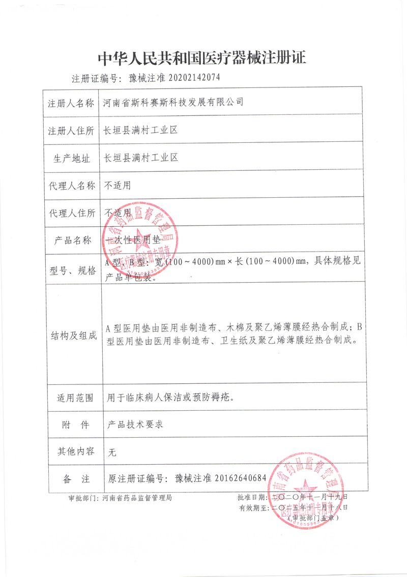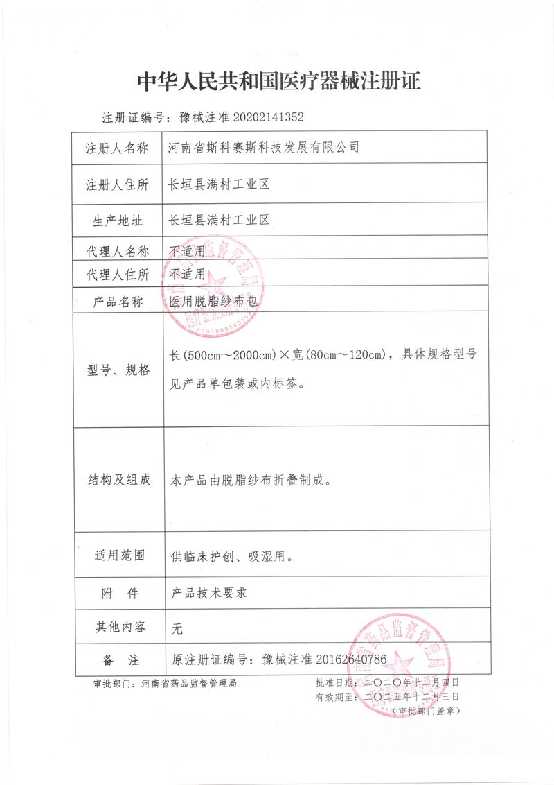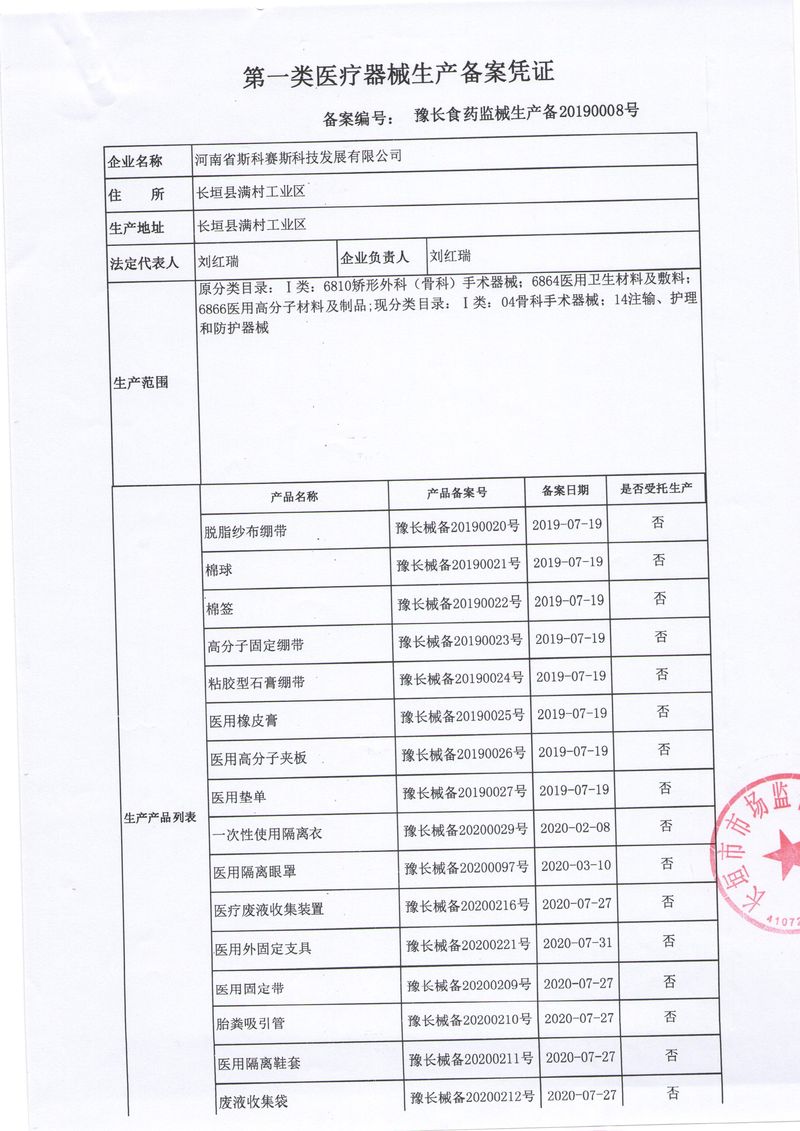 河南省斯科賽斯科技發(fā)展有限公司創(chuàng)建于 2011 年,位于“中國醫(yī)療耗材之都”- 河南省長垣縣,西臨 308 省道,南靠新菏鐵路,北依長濟(jì)高速,交通便捷,經(jīng)濟(jì)發(fā)達(dá),環(huán)境優(yōu)美。斯科賽斯積極進(jìn)入醫(yī)療健康和服務(wù)領(lǐng)域,秉承為用戶創(chuàng)造價(jià)值的理念,專注于醫(yī)用耗材解決方案的研發(fā)和運(yùn)營,并為用戶提供完善的產(chǎn)品解決方案;  斯科賽斯主要生產(chǎn)醫(yī)用麻醉系列、醫(yī)用高分子系列、醫(yī)用敷料包系列、醫(yī)用無紡布系列、醫(yī)用防護(hù)系列、醫(yī)用脫脂棉系列、生物材料制品類等七大類、100 多個(gè)品種、400 多個(gè)規(guī)格的產(chǎn)品。公司占地面積約 30000 平方米,建筑面積20000 平方米,擁有 10 萬級(jí)的凈化車間總面積 10000 平方米。擁有國際先進(jìn)水平的生產(chǎn)設(shè)備和檢測(cè)儀器,技術(shù)裝備精良,檢測(cè)手段完善,為醫(yī)療行業(yè)的不斷發(fā)展進(jìn)步提供保障。公司順利通過 ISO9001、ISO13485 質(zhì)量管理體系認(rèn)證。  斯科賽斯堅(jiān)持研發(fā)高科技新產(chǎn)品,力爭在醫(yī)療器械關(guān)鍵領(lǐng)域取得技術(shù)和研發(fā)的重大突破;立足國內(nèi)和國際兩個(gè)市場,逐步實(shí)現(xiàn)管理理念、經(jīng)營機(jī)制、人力資源、技術(shù)、產(chǎn)品、市場等全方位對(duì)接,提高企業(yè)的核心競爭力;過去的歲月里,斯科賽斯砥礪前行,誠信務(wù)實(shí),銳意進(jìn)取,不斷創(chuàng)新,用自己的睿智和辛勞,以富有責(zé)任感的使命,在探索中追求,在追求中超越,致力于成為值得信賴的醫(yī)療用品生產(chǎn)企業(yè)!在未來的日子里,斯科賽斯將一如既往豪情滿懷,信心百倍,攜手并肩,執(zhí)著追求,向更高的的目標(biāo)前進(jìn),鑄造新的輝煌!